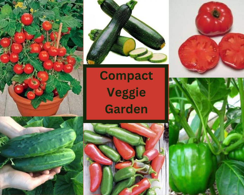 This is a ready-made Compact Vegetable Garden that includes several of your traditional favorites. These vegetables were bred for small spaces and work well in small gardens or containers. NOrmal size veggies on compact plants. Full sun works best for maximum production. This collection includes 6 plants: